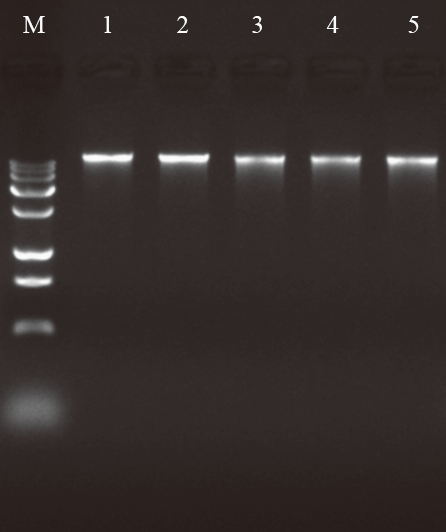 4、农田土;5、山林土;M:Trans 15k DNA Marker